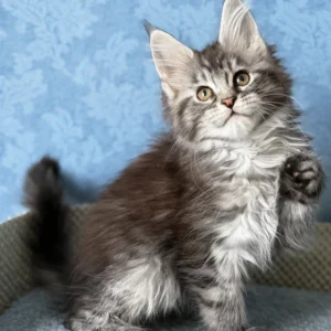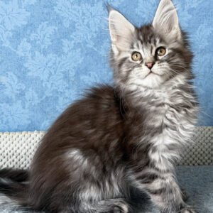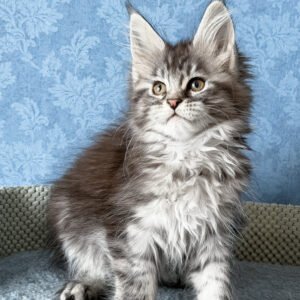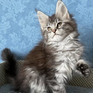 Hello, I’m Luna. I’m a Maine Coon girl with a black smoke blotched tabby coat that reveals soft contrast as I move, and bright orange eyes that give me a warm, attentive expression. I already carry the calm confidence my breed is known for — steady, observant, and quietly self-assured. My body is developing into a strong, well-balanced Maine Coon frame, with solid paws and an unhurried, graceful way of moving. I eat Royal Canin food, which supports my healthy growth and helps me develop evenly and comfortably.