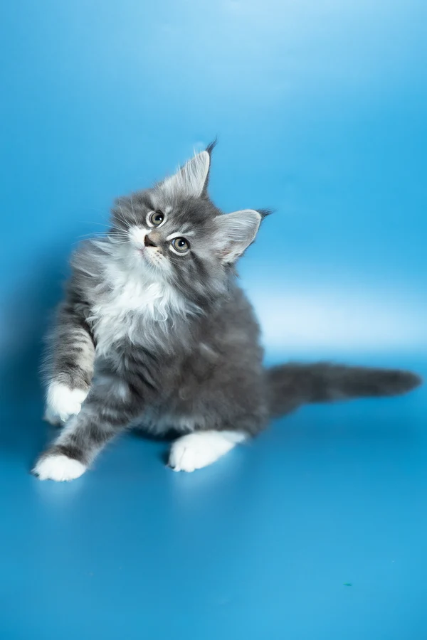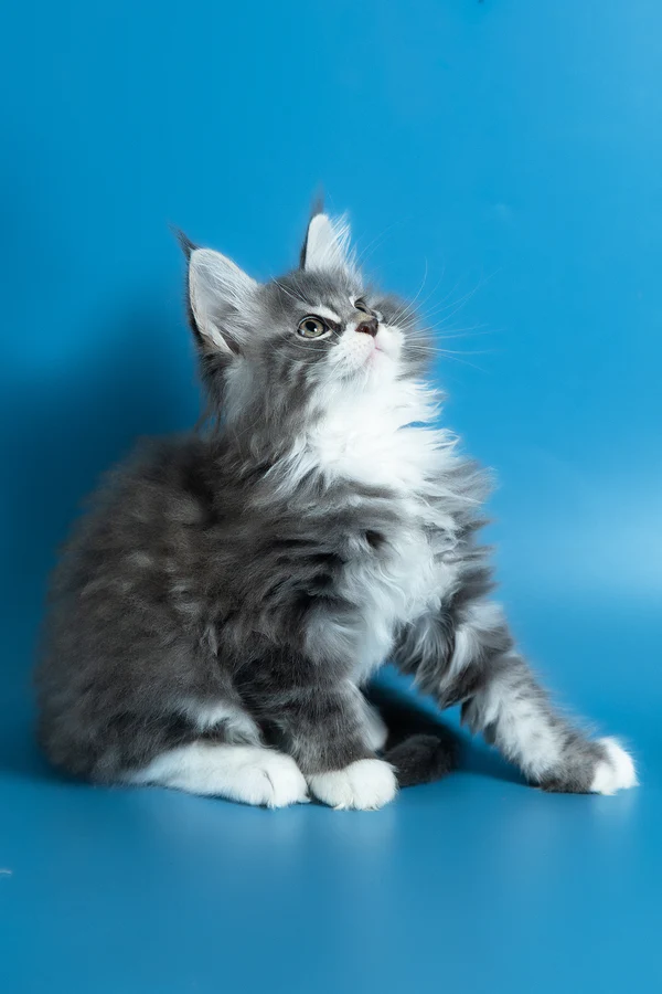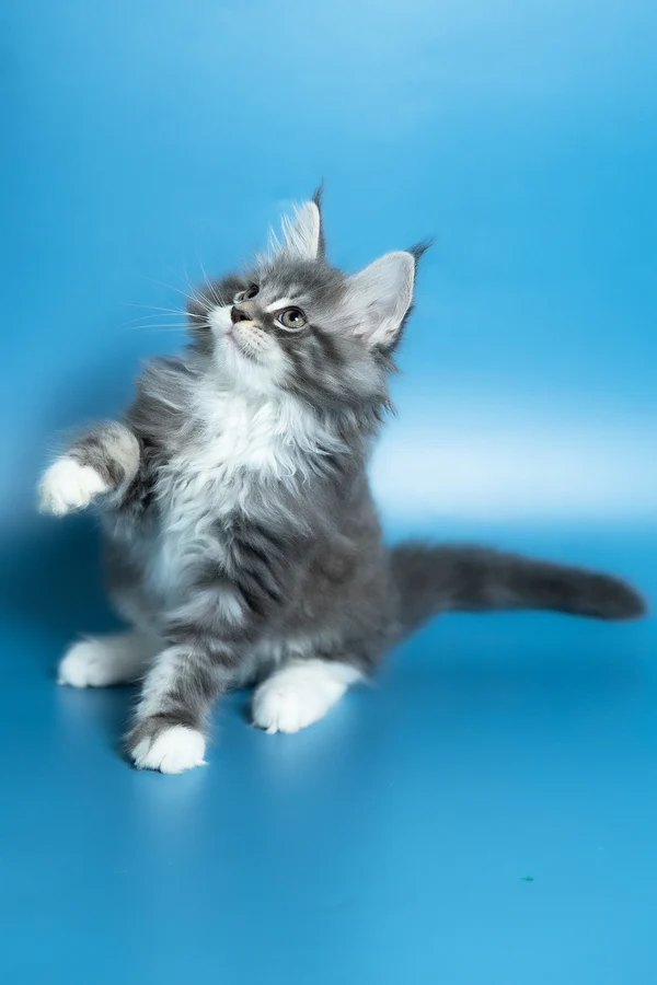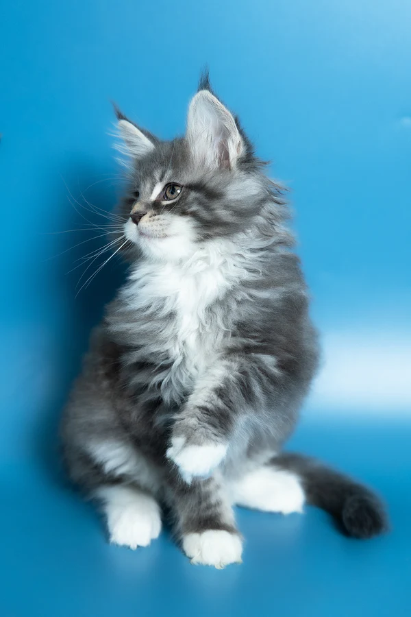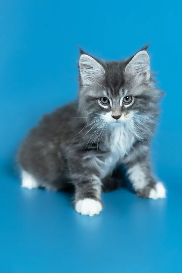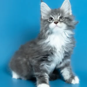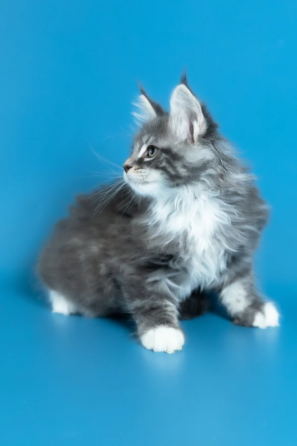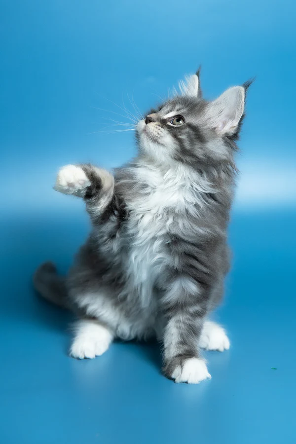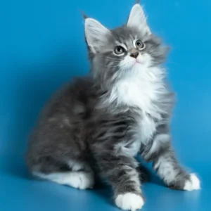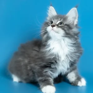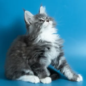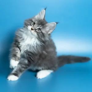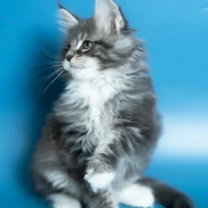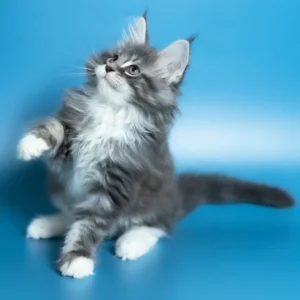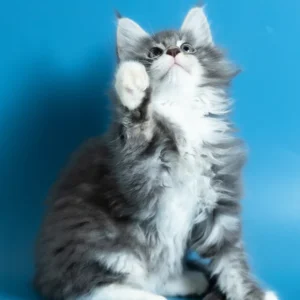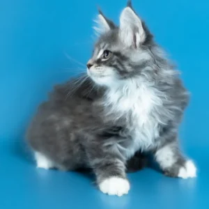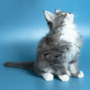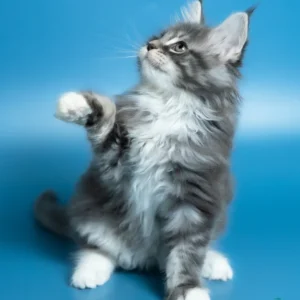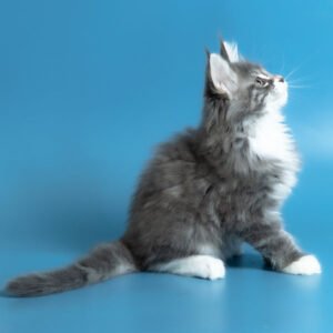 Hello, I’m Venya. I’m a Maine Coon boy with a blue silver classic tabby with white coat that shows beautiful contrast and depth, and calm yellow eyes that reflect my gentle nature. My coat color is especially striking, with clear tabby markings and soft white mittens that add to my balanced, elegant look. I already have that “gentle giant” presence my breed is loved for — strong in build, but calm and reassuring in the way I move and observe. I eat Royal Canin food, which supports my healthy growth and steady development.